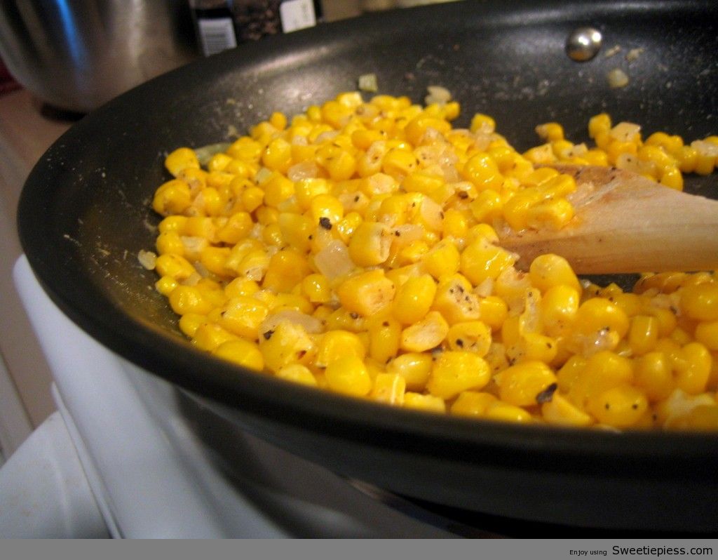 Remove corn from cobs by using a corn grater or knife, and mash the whole kernels a little. Slice bacon into 1-inch pieces. Cook bacon until brown in a large skillet. Remove bacon from skillet and add 1/2 stick butter to bacon grease. Over medium-high heat, pour in the corn. Fry in the grease and butter mixture. Lower the temperature and cook for 5 minutes, then put on simmer until corn is done, 10 to 15 minutes. Add black pepper, to taste. If corn seems too dry, add a little milk or water.